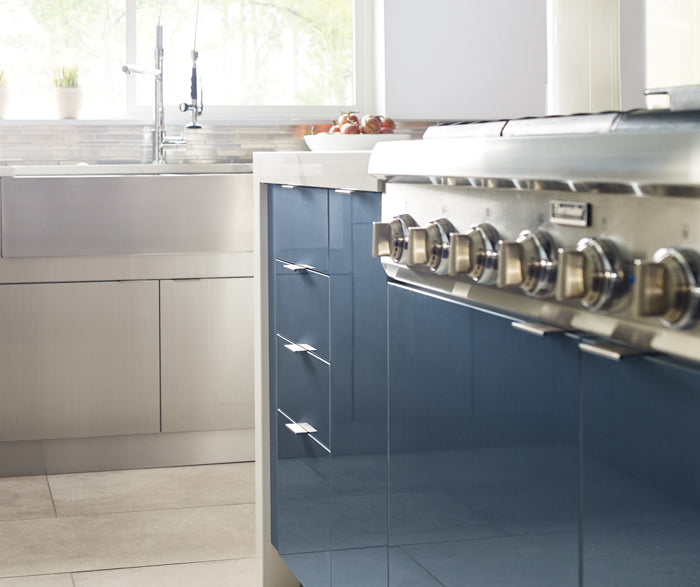 Decorative glass cabinet door options also include textured inserts with fashion-forward effects, such as bronze fabric, cocoa rice paper or metallic linen, as well as classic looks like reeded or frosted glass.