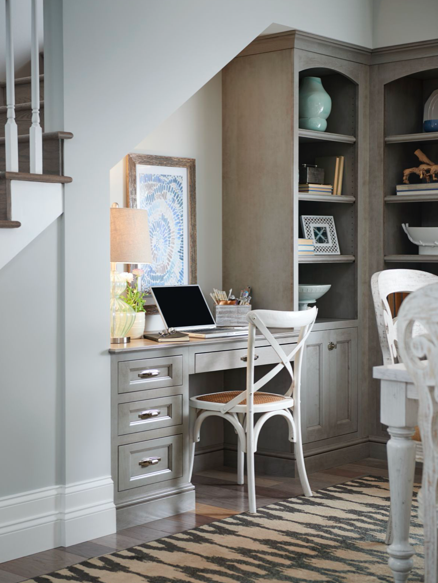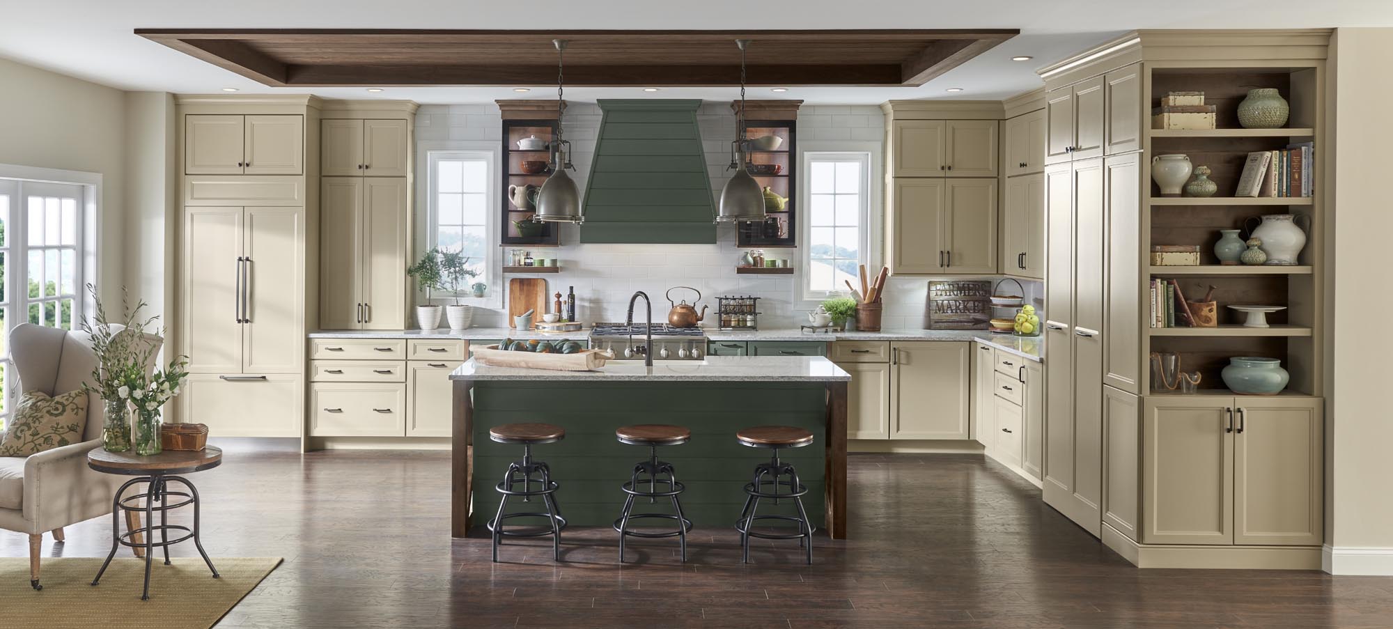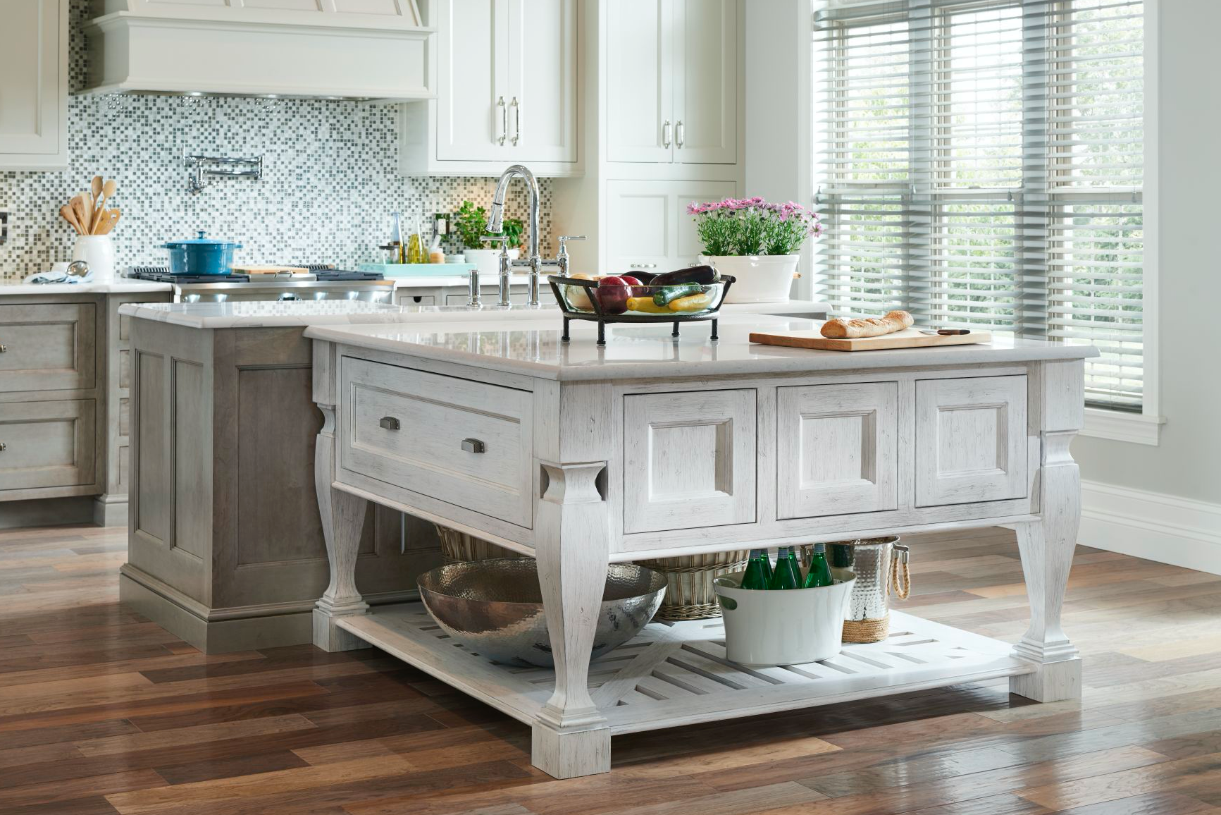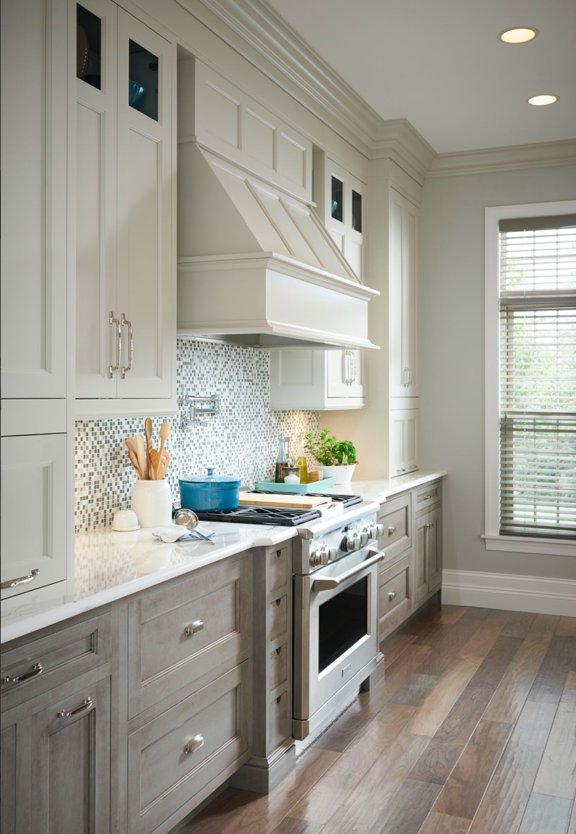 Shown in Park Place Flat Panel in maple Sea Salt Classic, Earl Grey Classic, Park Place Raised Panel in cherry Silver Appaloosa